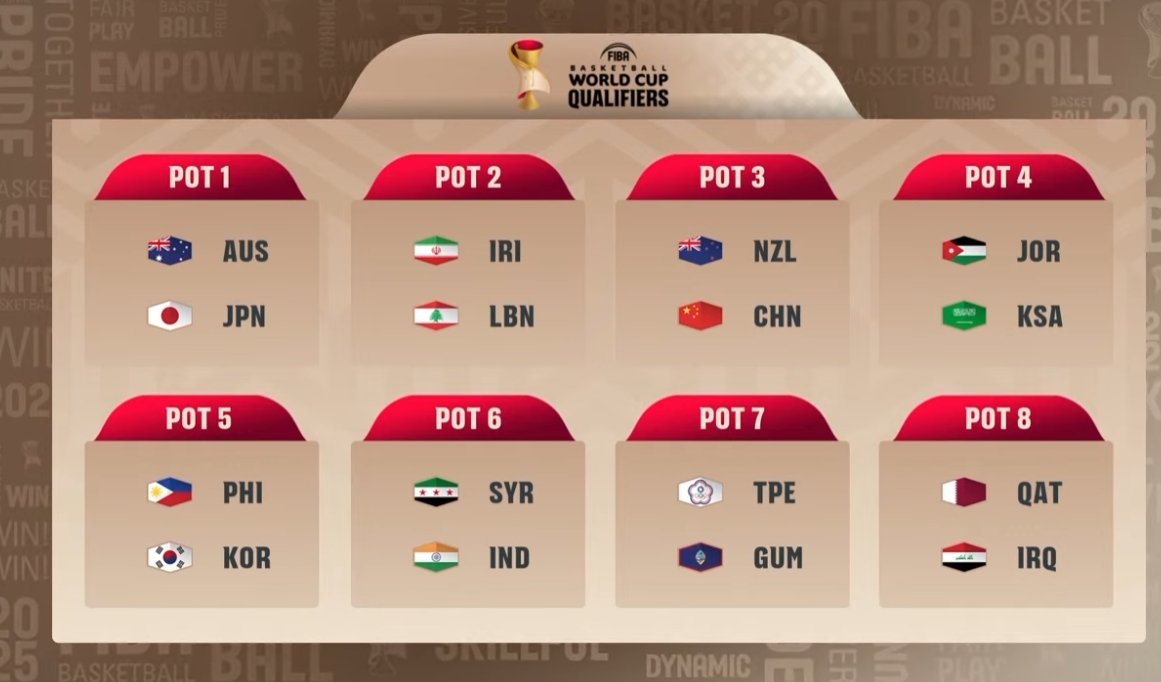 各支球队分档情况,中国男篮分在第三档