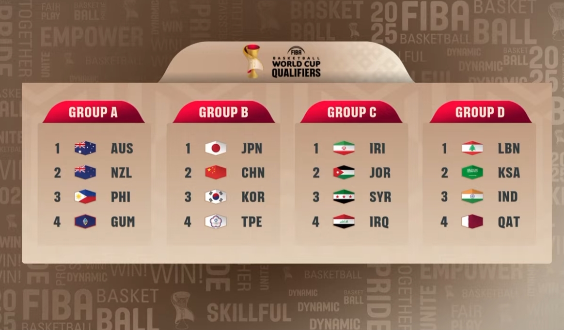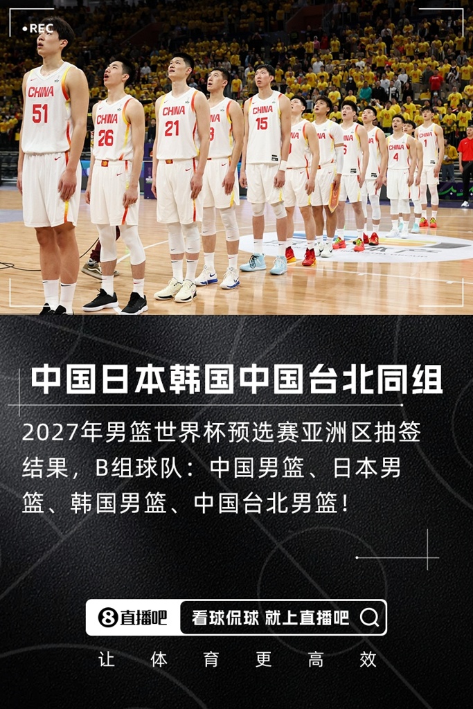 05月13日讯 2027年男篮世界杯预选赛抽签仪式今日在卡塔尔多哈举行,中国男篮最终分在B组,同组对手为:日本、韩国、中国台北!