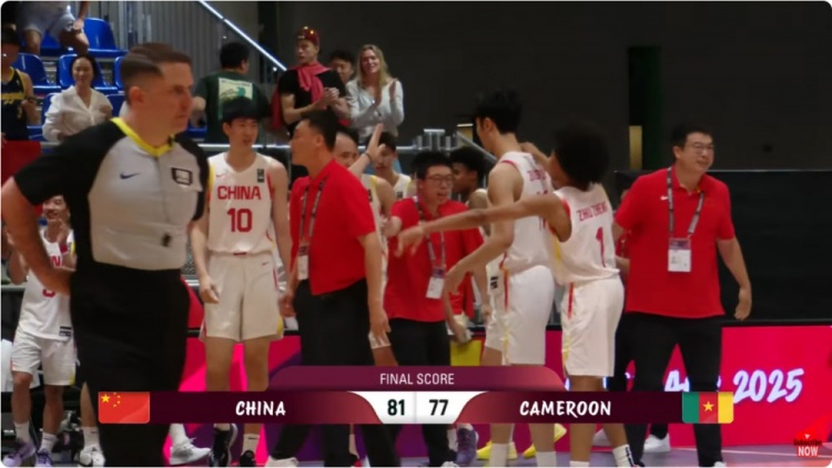 一开场,陈家政手感火热,内外开花连得8分,巴松连续拿分强势回应,双方打得非常激烈,比分始终紧咬,次节朱正持续输出,率队轰出9-0的攻击波强势反超,但喀麦隆凭借篮板优势顽强咬住,半场战罢中国队41-40领先喀麦隆队。下半场,喀麦隆队通过二次进攻获得5分优势,陈家政和张博源相继命中三分努力追赶,末节双方依旧打得难解难分,比分始终紧咬,中国队内外开花连得5分反超,郇斯楠连续送出大帽,陈家政三分还有,关键时刻中国队掩护犯规,巴松连投带罚拿到5分,张博源被吹违体犯规,但随后自己造杀伤两罚全中杀死比赛。最终,中国队81-77力克喀麦隆,最终获得第13名。