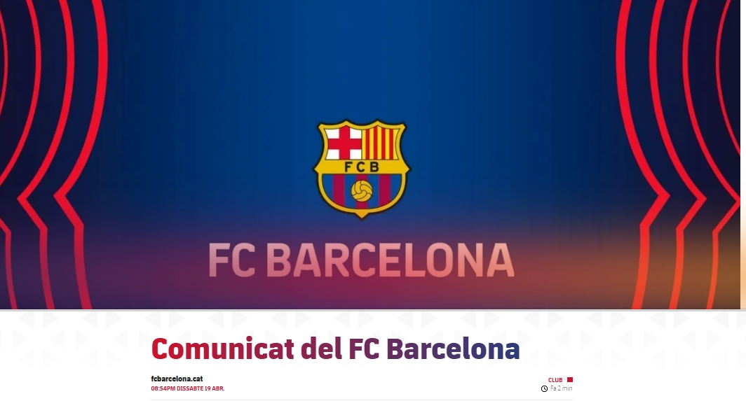 为此,巴塞罗那足球俱乐部将向足球监管机构提出正式申诉,以避免出现新的损害足球世界伟大主角——足球运动员利益的情况。