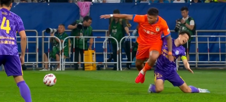 第31分钟,萨尔瓦多身后铲倒刘洋染黄。↓