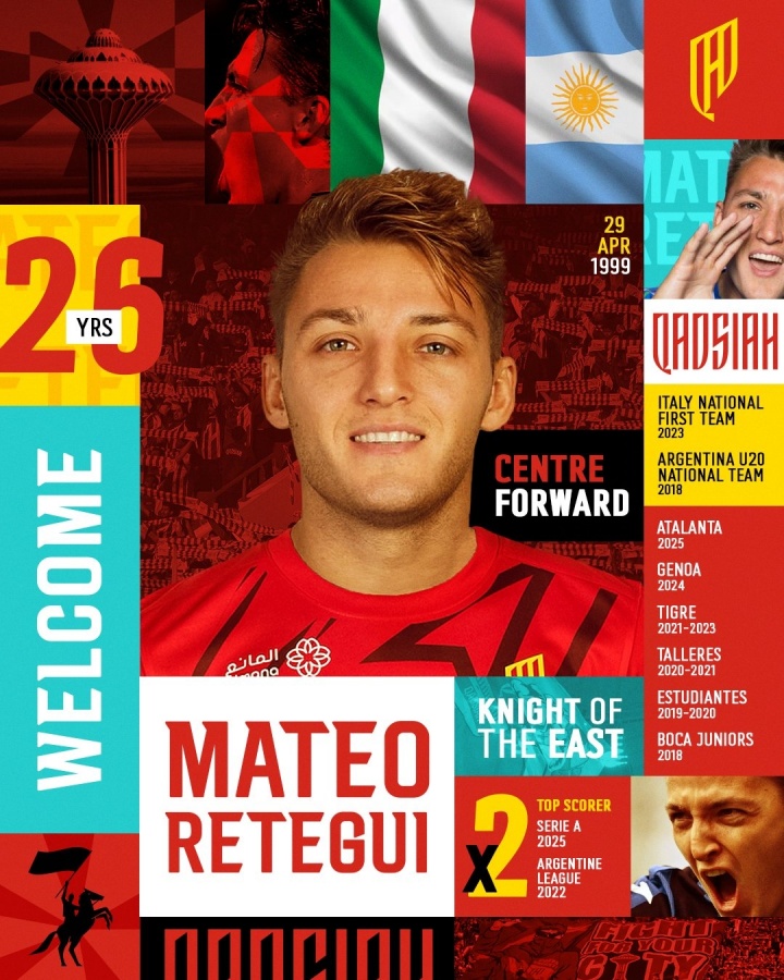 07月22日讯 沙特球队卡迪西亚官宣,26岁的意大利归化前锋雷特吉加盟球队。综合此前报道,雷特吉转会费为6500万欧,在沙特的年薪为2000万欧,是在意甲的6倍。